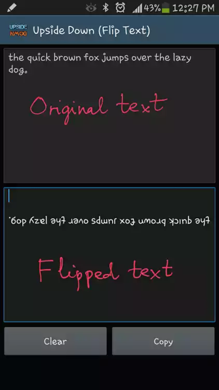 Next select the flipped and reversed text in the second box and tap on Copy. A number of text options will automatically appear with different font types. Aug 27 2019 Upside Down Flip Text App Yes this is one of the best and fastest apps to type upside down or flip your writing.